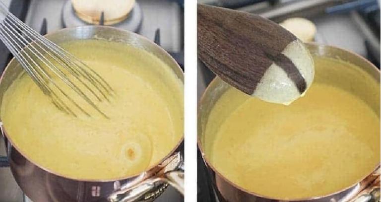 Uždėkite puodą ant viryklės ir virkite kremą ant silpnos ugnies. Būtinai nuolat maišykite, kol kremas taps tirštas