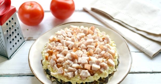 Šios salotos „Mylimas vyras” neabejotinai užims garbingą lyderių vietą jūsų mėgstamiausių receptų sąraše. Jos tikrai skanios, visi komponentai puikiai dera tarpusavyje. Rūkytos mėsos natas harmoningai papildo sultingi grybai, gaivūs švieži pomidorai suteikia patiekalui lengvumo. Sūrio ir kiaušinių sluoksnis garantuoja subtilią skanėsto tekstūrą ir neįprastą išvaizdą.
