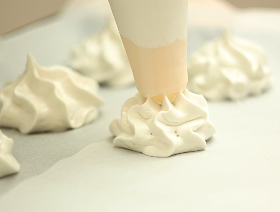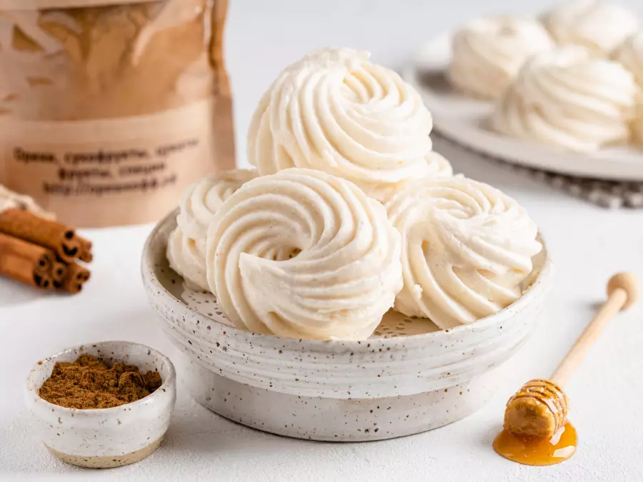 Tada nustatomas didžiausias maišytuvo greitis, ir po 3 minučių gaunama visavertė zefyrų masė. Ilgai traukti neverta – iš karto nukaiskite porcijas ant pergamento lakšto.