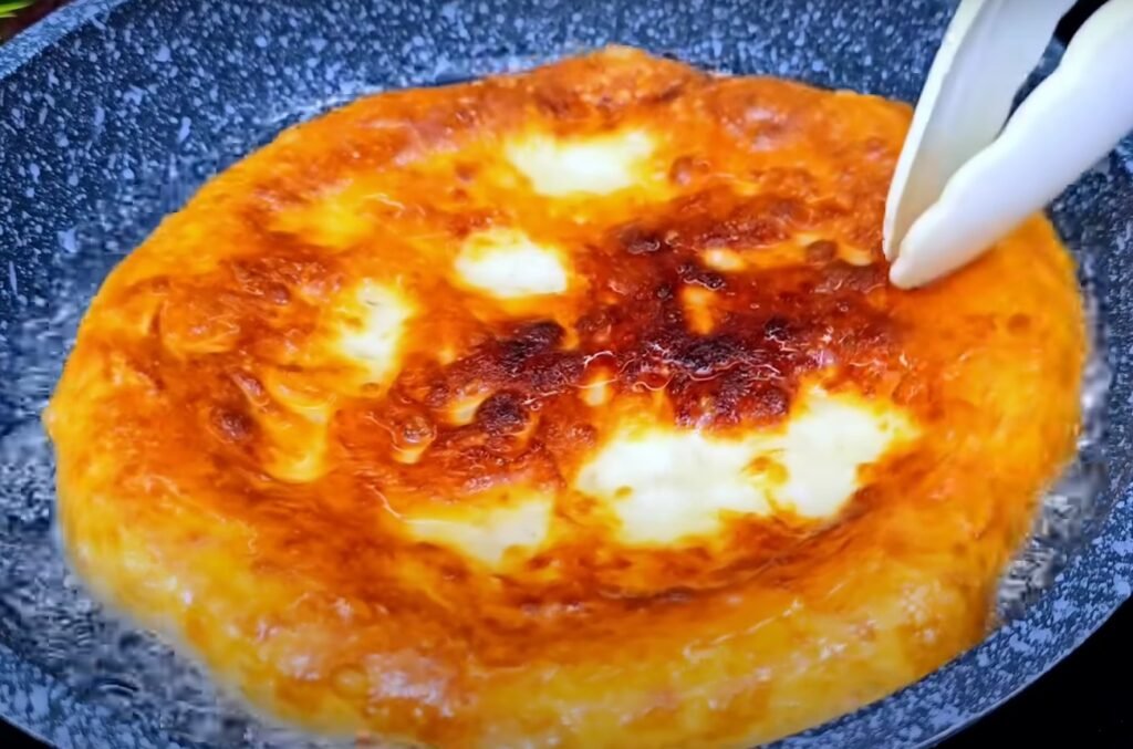 7. Sraigę iškočiokite į apvalų paplotėlį ir kepkite keptuvėje, kol iš abiejų pusių taps auksinės spalvos.