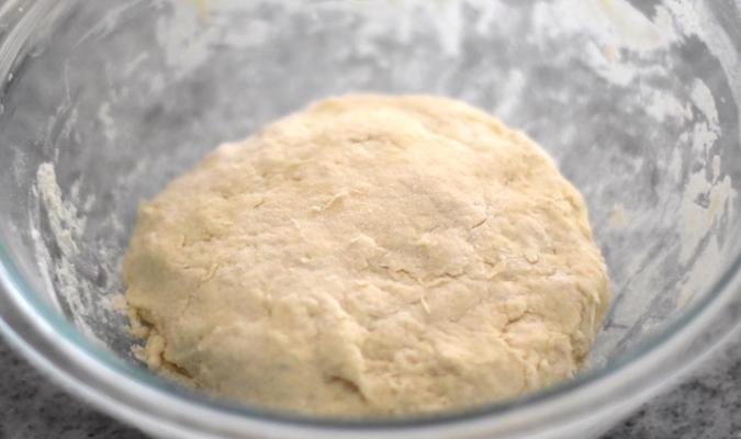 Gaminimas pradedamas nuo to, kad dubenyje sumaišykite kefyrą, vieną kiaušinį, cukrų, druską ir augalinį aliejų. Visa tai kruopščiai išmaišoma. Į mišinį persijojamas vienas puodelis miltų, o antrasis paliekamas pabarstymui. Į miltus įberiama kepimo sodos, po to jie sumaišomi su kefyro mišiniu. Palaipsniui dedami likę miltai, kol tešla tampa minkšta ir elastinga. Ji gali būti šiek tiek lipni, tačiau su miltais reikia elgtis atsargiai, kad tešla nebūtų standi.