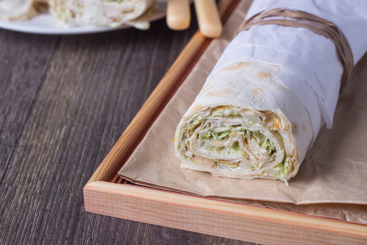- 2 lakštai plono lavašo (maždaug 30×40 cm)