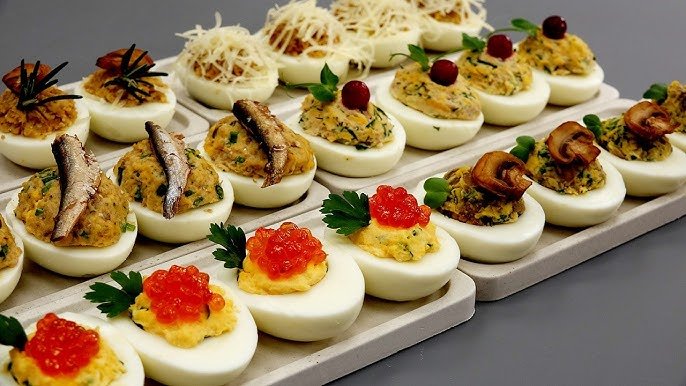 Toks užkandis traukia ir ryškiu skonio deriniu, ir tvarkingu serviravimu. Per pusę perpjauti kiaušiniai su tvarkingai sudėliotu įdaru atrodo estetiškai, o įdarų variantų yra tiek daug, kad patiekalą galima pritaikyti pagal bet kokius pageidavimus. Pagrindas išlieka įprasti virti kiaušiniai, kurie yra visiems prieinami ir labai greitai paruošiami. Į baltymo vidų tradiciškai dedama švelni išminkytų trynių masė, majonezo padažas, aromatiniai prieskoniai arba garstyčios. Tačiau jei norisi, įdaras gali tapti daug įdomesnis ir turtingesnio skonio.