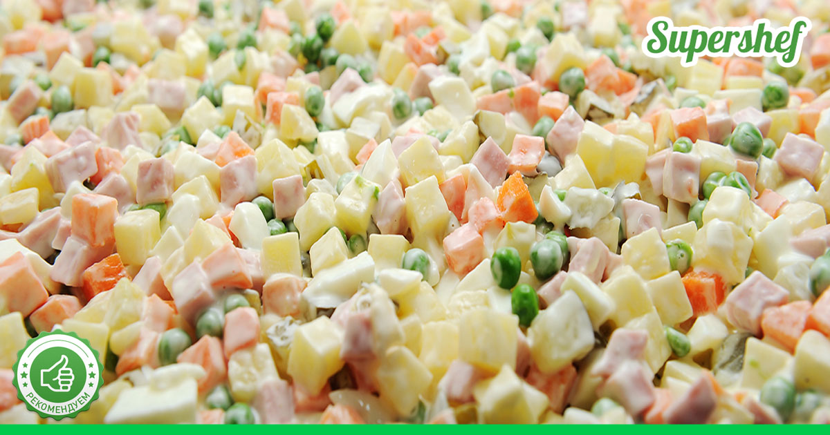 Žinoma, kai kurie užginčys salotų turinį ir jų sudedamąsias dalis. Tačiau standartinis receptas yra būtent toks. Ir apskritai kiekvienas gali keisti jo sudėtį savo nuožiūra. Virtą mėsą galite pakeisti kumpiu arba virta vištiena. Kiek žmonių, tiek nuomonių! Savo variantu galite pasidalyti komentaruose.