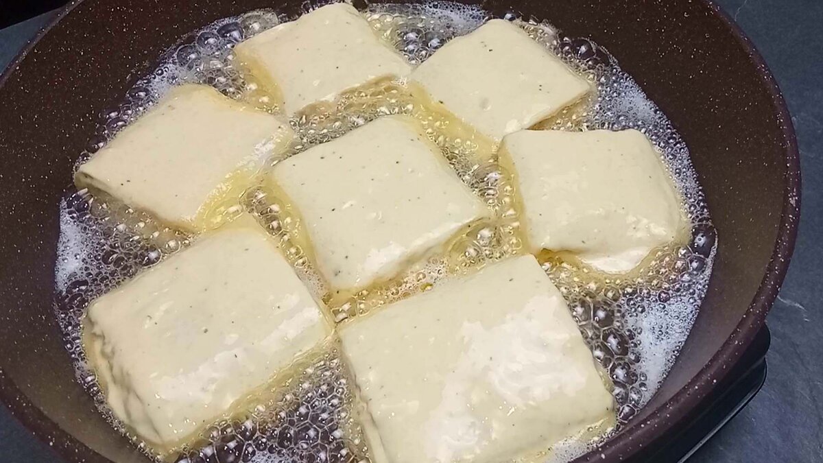 Panardinkite gabalėlį į tešlą ir kepkite, kol paruduos.