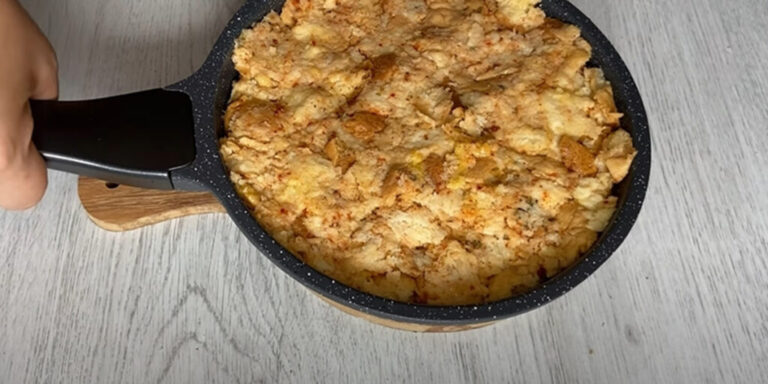 Palaikykite keptuvę ant silpnos ugnies 5-7 minutes. Apverskite plokštainį ir palaukite tiek pat laiko. Dėkite į lėkštę, supjaustykite porcijomis ir galima skanauti.