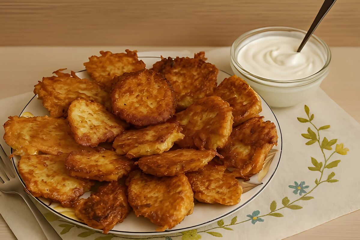 Keptuvėje įkaitinkite liesą aliejų. Šaukštu semkite gautą masę ir dėkite ją ant keptuvės, suformuodami kepsnelius. Kuo plonesnis sluoksnis, tuo traškesnės ir iškepusios jos bus. Ugnį įkaitinkite iki vidutinės, kad jie nesudegtų. Kai tik blyneliai iš abiejų pusių paruduos, nukelkite nuo ugnies. Patiekite karštus