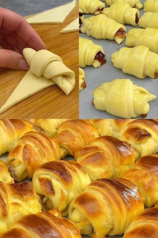- Gabalėliai suvyniojami į bandeles ir paskleidžiami ant kepimo popieriaus.