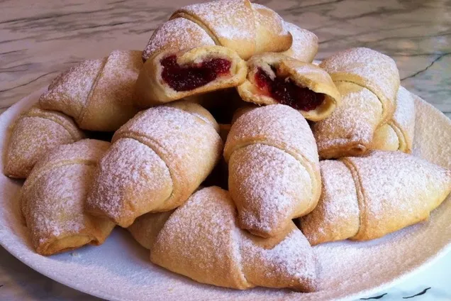 - Po to tešla iškočiojama į didelį apskritimą. Apskritimas perpjaunamas į 16 dalių, į kiekvieną dedama po truputį uogienės.