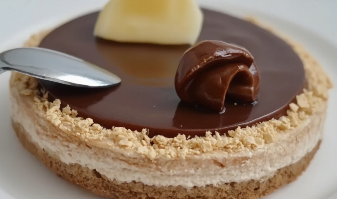 Traškus vaflių pagrindas, lengvas karamelės saldumas puikiai dera su švelniu įdaru. Varškė ir jogurtas suteikia tirštos, kreminės tekstūros
