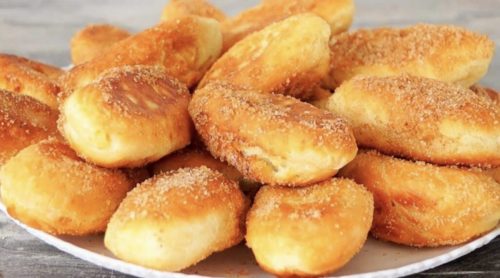 Paruoštus paplotėlius pamerkite į cukraus ir cinamono mišinį. Štai ir viskas, patiekalas paruoštas. Galite mėgautis kepiniais.