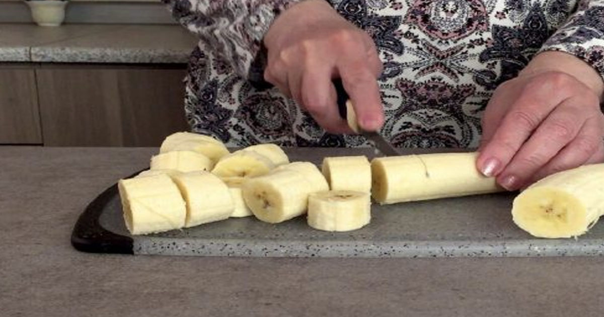 Bananus supjaustykite nedideliais gabalėliais. Keptuvę gerai ištepkite sviestu. Ant viršaus pabarstykite 3 valgomuosius šaukštus cukraus, kad gautųsi graži karamelinė plutelė.