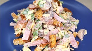 Šios salotos mūsų šeimoje valgomos iš karto – šeima jas mėgsta dėl ryškaus skonio, o aš – dėl to, kad joms paruošti reikia mažiausiai laiko ir produktų.