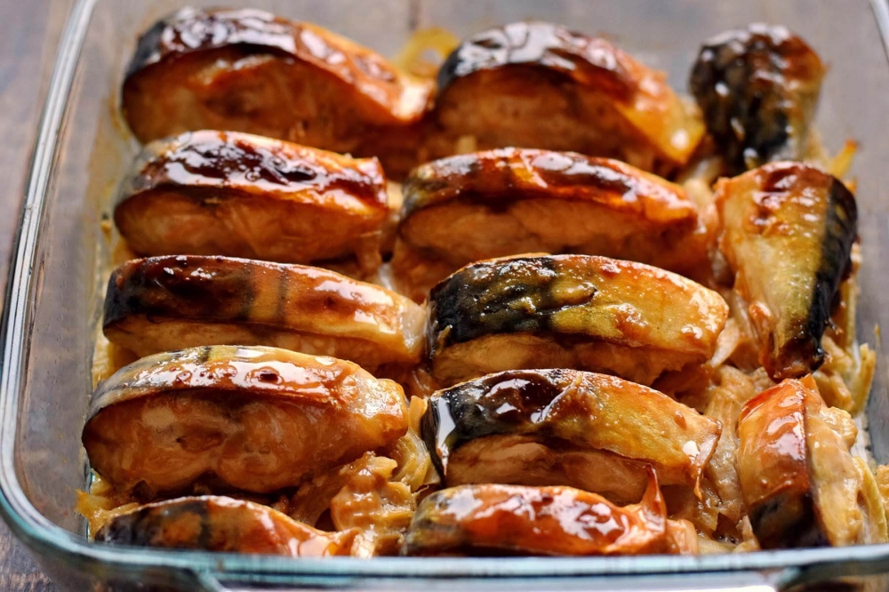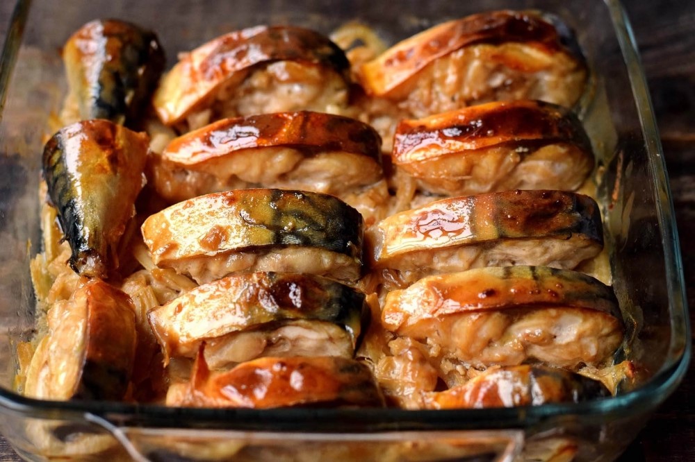 Skumbrės kepimas su aromatingu padažu