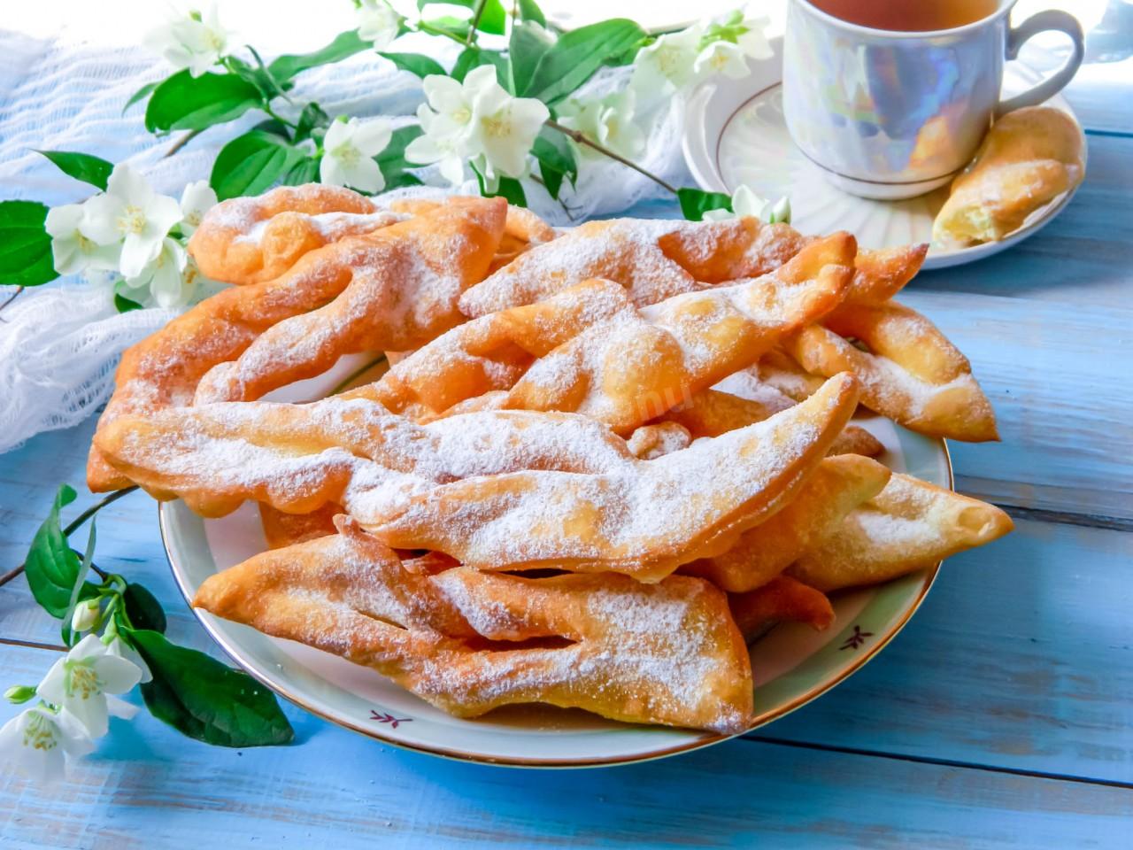 - Kepti iš abiejų pusių khvorostus reikia įkaitintame liesame aliejuje. Jo reikės daug, jei reikia, galima įpilti po truputį.