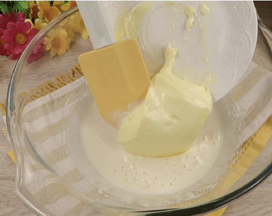 druska, sudėkite suminkštėjusį sviestą ir dar kartą išplakite.