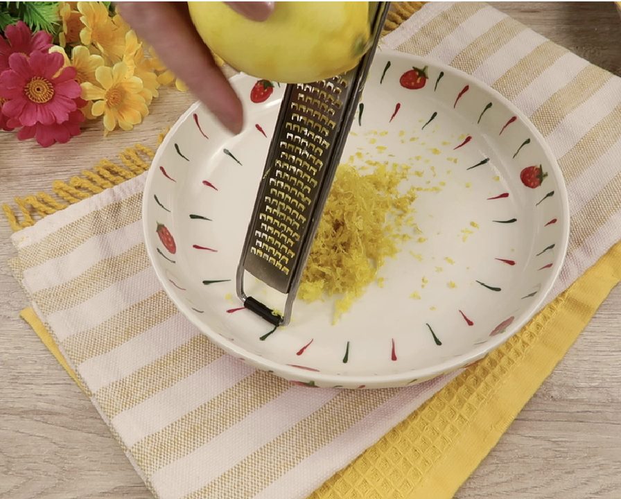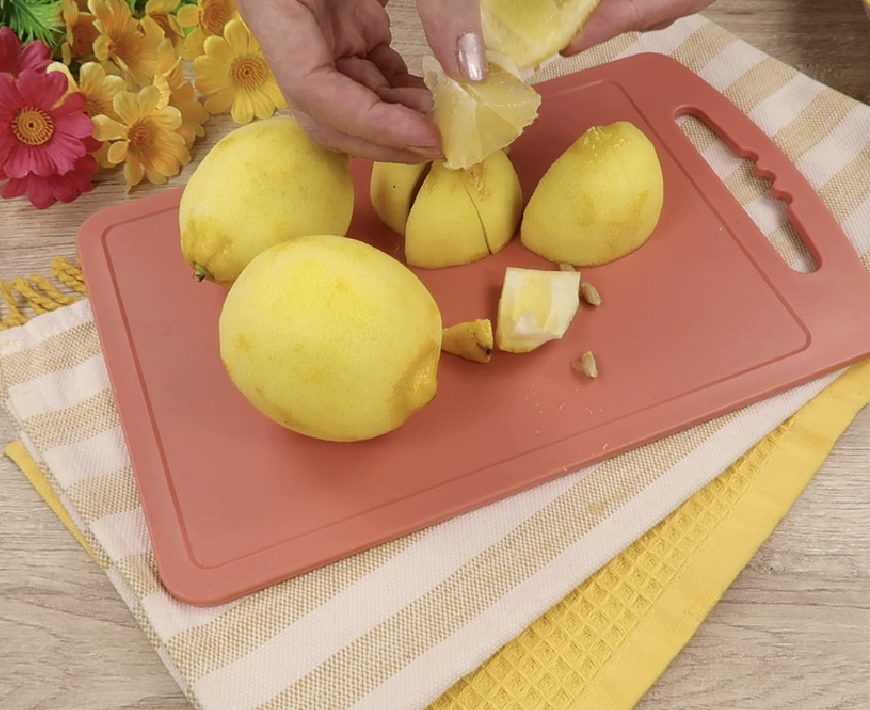 Naudodami tarką, pašalinkite žievelę nuo citrinų, neliesdami baltojo sluoksnio
