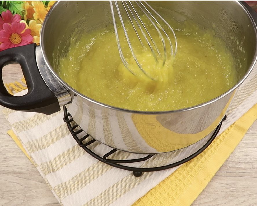 Pastatykite ant silpnos ugnies ir visą laiką maišydami virkite, kol sutirštės. Paruoštą masę reikia atvėsinti