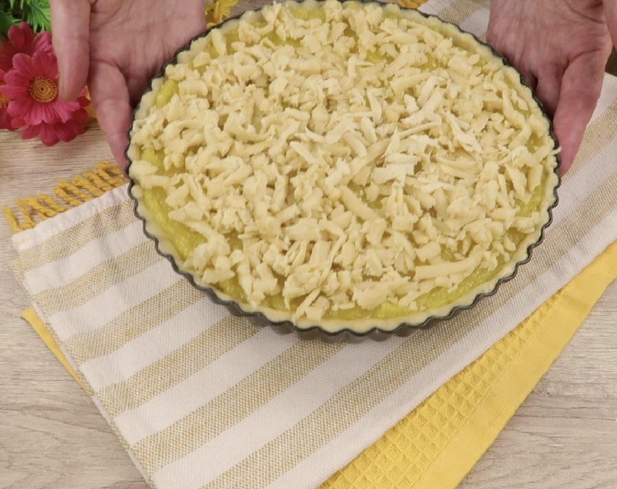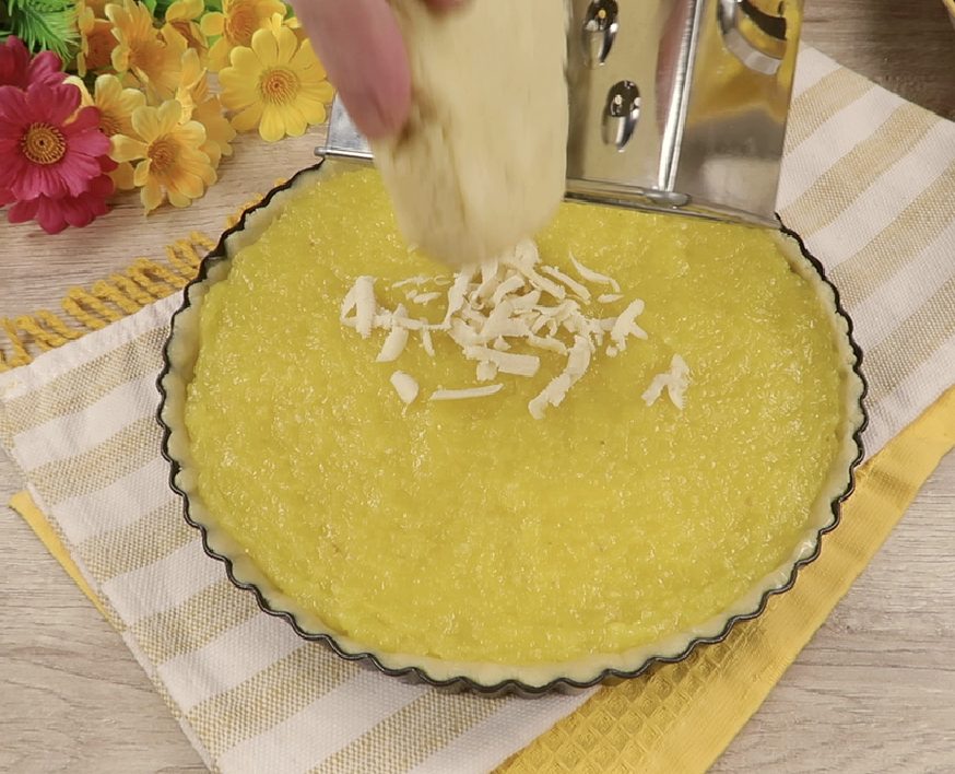 Sušalusią tešlą ant įdaro užtarkuoti ant tarkos