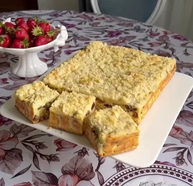 Jei jums reikia išbandyto kepimo recepto su išraiškingu varškės skoniu, šis sodrios tekstūros ir vaisių įdaras gali būti dievo dovana. Jo sudėtis subalansuota – sodrus varškės, abrikosų ir sultenių sluoksnis dera su minkštu pagrindu ir traškiais trupiniais. Jį paruošti nesudėtinga, o rezultatas įspūdingas net ir be ypatingos progos.