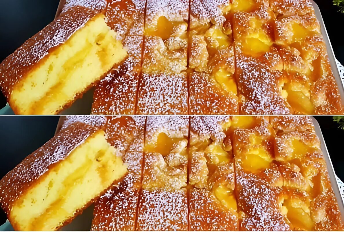 6. Paruoštą desertą pabarstykite cukraus pudra.