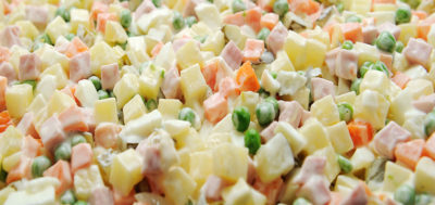 Nereikia manyti, kad norime patarti keisti gana klasikinį standartinių salotų „Olivier” receptą. Tiesa ta, kad originaliame salotų recepte, kuris buvo naudojamas Sovietų Sąjungoje, buvo konservuotų žirnelių ir jie buvo perkami gerokai prieš Naujųjų metų šventes. Žinoma, daktariška dešra buvo daug prieinamesnė už mėsą. O bulvių dėka šeimininkės stengėsi padidinti salotų kiekį.