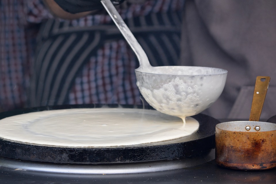 Tešlai iš dviejų stiklinių miltų, stiklinės pieno ir trijų kiaušinių užtenka poros stiklinių paprasto „gazuoto” vandens. Į tešlą galima įpilti saulėgrąžų aliejaus, vieną arba du valgomuosius šaukštus