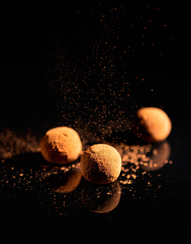 Triufelius apvoliojame kakavos milteliuose ir tiekiame.