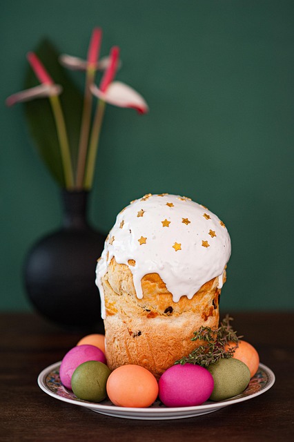 Jei viršus ima degti, uždenkite jį drėgnu pergamentu. Iškepusį kepinį patikrinkite mediniu iešmeliu. Po 10 min. kepimo velykinius pyragaičius atsargiai išimkite iš formų.