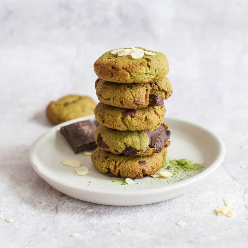 Žali sausainiai iškepti be jokių sintetinių priedų! Dabar svarstote, kas ta matcha? Tai jauni, specialiu būdu auginami ir ruošiami žaliosios arbatos lapeliai, sutrinti į miltelius. Šioje arbatoje yra vitaminų, mineralų ir antioksidantų. Sausainiams jie suteikia ne tik natūralią žalią spalvą, bet ir ypatingą skonį.